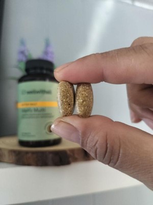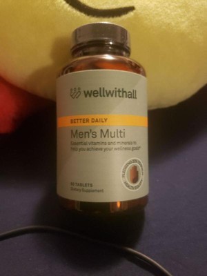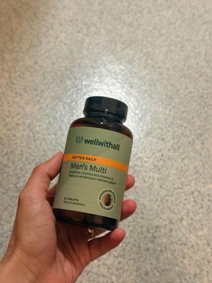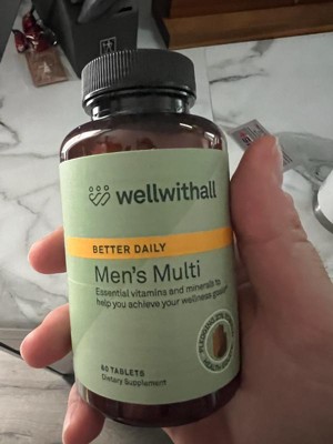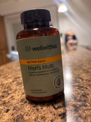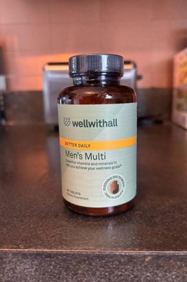[This review was collected as part of a promotion.] Wellwithall Better Daily Men's Multi: I've incorporated these vitamins into my husband's daily routine, he's been feeling great since he started taking them. The bottle contains 60 complete vitamins, which are large in size, but he has no trouble swallowing them,he usually takes two a day, typically in the morning with his meal,he hasn't noticed any side effects and has felt very good since he started taking them. These vitamins are designed to support the immune system and overall well-being.