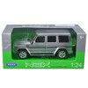 Brand new 1/24 scale diecast car model of Mercedes Benz G Class Wagon Silver die cast model car by Welly. Brand new box. Real rubber tires. Officially licensed product. Has opening hood and front doors.