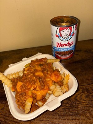 [This review was collected as part of a promotion.] Wendy's chili is a quick and easy substitute for homemade chili. I like it better than wolf brand chili, but I like homemade chili better. I like the no beans chili and put it on fries. This is a great substitute.