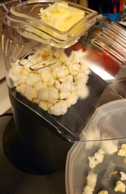 [This review was collected as part of a promotion.] This is a great little popcorn popper. The great thing is your popcorn pops without oil or butter which is healthier for you. I like to use this when I make caramel corn or popcorn balls. So convenient and quit to pop. It even has a measuring cup on the top which doubles for melting butter. Good product.