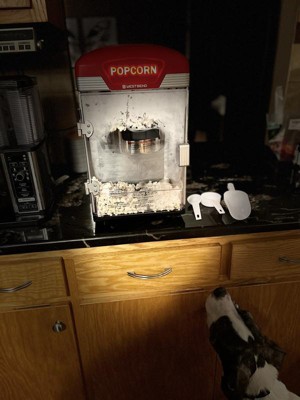 [This review was collected as part of a promotion.] This popcorn machine was recieved as a promotion but I think it is super cute and vintage looking. It works really well for making popcorn. Clean up is a bit tricky f a pain but if you let everything wipe off any oil quickly from the bowl and then let it cool before cleaning the inside of the windows etc you can manage a little easier. I used water/vinegar to clean the inside and it cuts through the grease really well. My kids love it