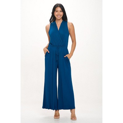 WEST K Women's Bridget Side Tie Strappy Wide Leg Jumpsuit w/ Pockets - Large - Teal Blue