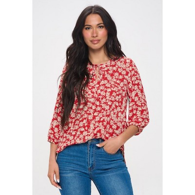 WEST K Women's Dallas Side-Tie Short Dolman Sleeve Faux Wrap Top - Large - Red Daisy