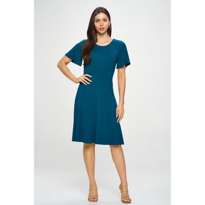 [This review was collected as part of a promotion.] Love this little black dress. It can be worn dressed up or dressed down casual. Short sleeves with nice side pockets and midi length. Easy care by being machine washable and line dry. Feels like a nice T-shirt fabric. Perfect for church wearing by adding a cute jacket or wrap. Very pretty.