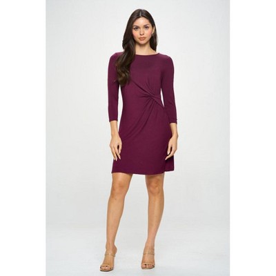 The Kelsey 3/4 sleeve dress with ruching detail on the side is a wardrobe must-have. This versatile knit dress is comfortable, breathable and on top of it all it's also practical for all occasions. Made in USA. Machine washable.