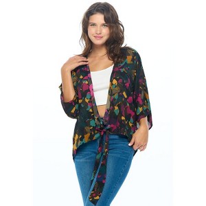 This lightweight feminine Shrobe is the perfect year-round layering piece. It drapes effortlessly over your shoulders and can be tied at the front your desired fit. Wear this loose printed tie-front Shrobe over a basic tee and jeans for easy on-the-go outfitting, on vacation over a bathing suit, or even over a solid blouse for a feminine yet professional look.