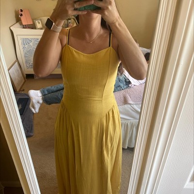 Expertly crafted, the Lauren Strappy Smocked-back Linen Dress is designed with a smocked-back for a comfortable fit. The spaghetti straps and light yellow hue add a touch of femininity, while the mixi dress style ensures effortless movement. Perfect for any summer occasion.
