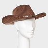 Sport a cowboy-style look during vacations, casual outings or other occasions with the Western Cowboy Hat from Universal Thread™. This cowboy hat features a belt-like design with charms to elevate the look. Made of 100% recycled polyester, the hat is comfortable to wear, and comes with adjustable back hook-and-loop fastener for a nice fit around the head.