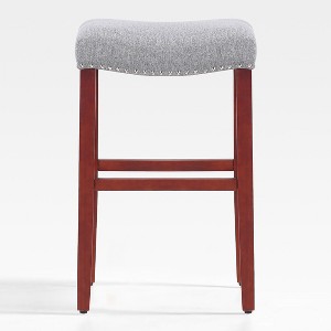 WestinTrends 29" Upholstered Backless Saddle Seat Bar Stool, Cherry/Gray - 2 of 4WestinTrends 29" Upholstered Backless Saddle Seat Bar Stool, Cherry/Gray - 3 of 4WestinTrends 29" Upholstered Backless Saddle Seat Bar Stool, Cherry/Gray - 4 of 4