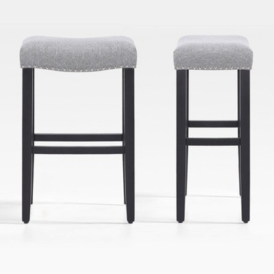 WestinTrends 29" Upholstered Saddle Seat Bar Stool (Set of 2), Antique Gray/Gray