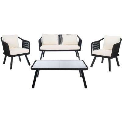 Lounging by the pool, patio, or balcony, no matter where you are, this patio set is sure to be the center piece for your outdoor living space. Each piece is designed with a sturdy steel and rattan wicker frame that can withstand even the worst weather, from windy rain to all-day sunshine. With comfortable cushions, you can spend hours chatting with friends or family while placing your drinks and snacks on the tempered glass coffee table. This cozy 4-piece set is certain to be the gathering of parties and the ideal addition to any outdoor living space.