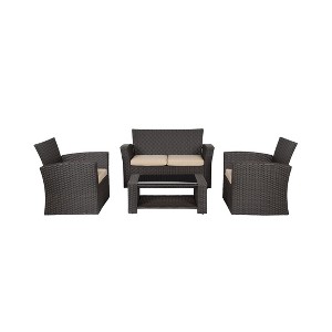 Product Name: WestinTrends 4-Piece Modern Patio Conversation Sofa Set with Cushions, Chocolate/Beige