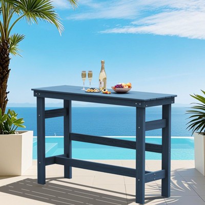 This outdoor dining set is perfect for out patio. Just the right size for just my wife and I or if we have a couple friends over. We are really enjoying this new modern style for the adirondack chairs and it makes our backyard look more expensive and elegant. Material is very sturdy and looks like it will withheld weather conditions.My wife loves them because they are very easy to clean which makes her life a bit easier. Overall, we are very happy with this set and definitely would recommend.