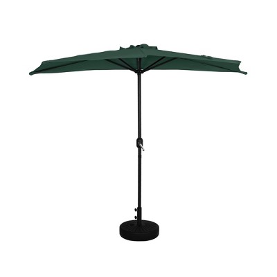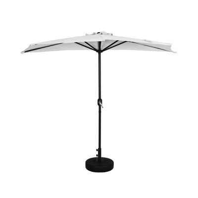 - Set includes: One (1) 9 ft. half market umbrella, One (1) Round HDPE fillable base