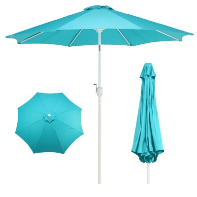 Westintrends 9Ft Half Round Umbrella with Half Resin Base Included for Outdoor Patio Window Shade Wall Balcony