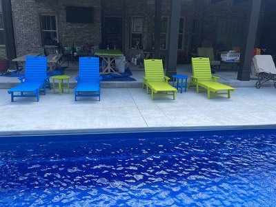 Great addition to my pool deck. I’m always nervous about the color turquoise, because you never really know what you’ll get, but the color is great! Easy to put together. I put them together myself with only the husband coming behind me to make sure everything was tight after I was done. I highly recommend and would buy again.