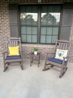 Love the rockers These chairs are perfect for my deck , so comfy and they are rockers!! Well made! Love the color too