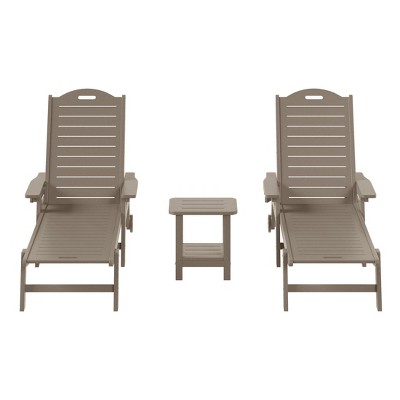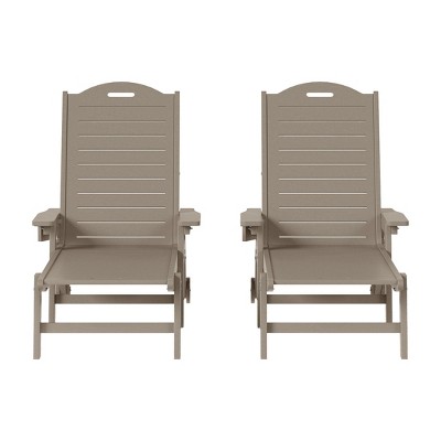 WestinTrends Aruba Outdoor HDPE Patio Chaise Lounge With Wheels & Cup Holder, Weathered Wood