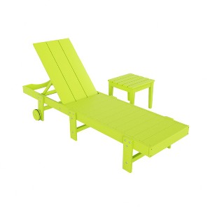 Product Name: WestinTrends Ashore Modern Poly Reclining Chaise Lounge With Wheels plus side table included, Lime