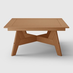 Enjoy leisure moments around this minimalist and modern outdoor coffee table. Crafted from durable HDPE material, it's ideal for outdoor settings and sure to make a stylish statement. This versatile piece doubles as an outdoor patio conversation table, offering a spacious 36-inch-wide tabletop for drinks and snacks. Its X-cross brace frame design ensures stability and durability, making it a reliable addition to your outdoor space year after year.