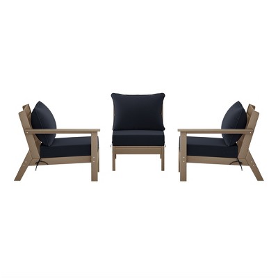 Set Includes: Two (2) patio club chair, One (1) Left Arm patio club chair, One (1) Right Arm patio club chair, One (1) Armless patio club chair, Five (5) deep seat back cushion, Five (5) deep seat rest cushion, and One (1) 37" Wide Inch Patio Conversation table