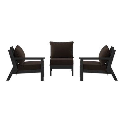 Relax by the poolside or on your patio under the stars with our charming set of two Modern Outdoor Club Chairs with Deep Seating Cushions. lounge back in bliss with the deep inclined seat rest and the slanted backrest that offers a relaxing design. our outdoor club armchair is a perfect blend of comfort and design with the durable and thick HDPE material that ensures a stable design. turn your backyard into an oasis with this patio sofa chair this season.