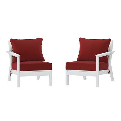 Product Name: WestinTrends Avalon Outdoor Modern HDPE Patio Club Chairs with Deep Seat Cushions (Set of 2), White/Red