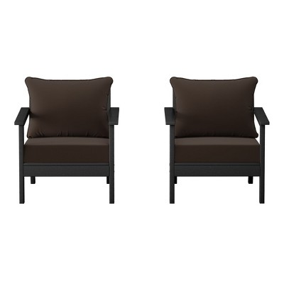 Relax by the poolside or on your patio under the stars with our charming set of two Outdoor Patio HDPE Deep Seating club chairs. lounge back in bliss with the deep inclined seat rest and the slanted backrest that offers a relaxing design. our outdoor club chairs are a perfect blend of comfort and design with the durable and thick HDPE material that ensures a stable design. turn your backyard into an oasis with these patio sofa chairs this season.