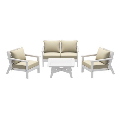Product Name: WestinTrends Avalon Outdoor Patio HDPE Left Arm Facing Sectional Corner Club Chair with Patio Cushions, White/Beige