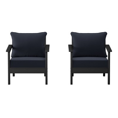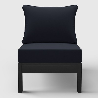 Product Name: WestinTrends Avalon Outdoor Patio HDPE Right Arm Sectional Corner Club Chair with Patio Cushions, Black/Navy Blue