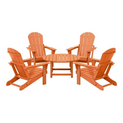 Product Name: WestinTrends Dylan 5-Piece Outdoor Patio HDPE Adirondack Chair With Round Coffee Table Conversation Set, Orange