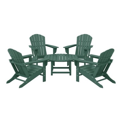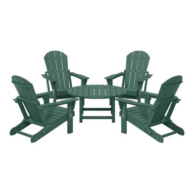 Product Name: WestinTrends Dylan 5-Piece Outdoor Patio HDPE Adirondack Chair With Square Coffee Table Conversation Set, Dark Green