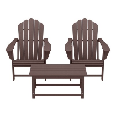 WestinTrends Highland 4-Piece Outdoor Patio HDPE Adirondack Chairs With Ottomans and Cup Holder Set, Dark Brown