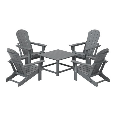Product Name: WestinTrends Highland 5-Piece Adirondack Chair with Folding Ottoman and Table Set, Gray