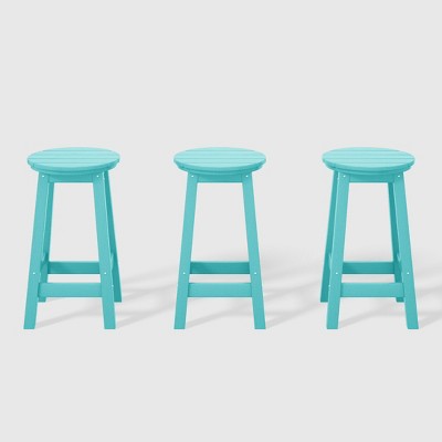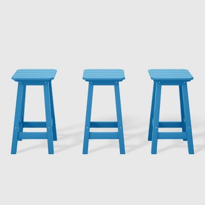 This 24" counter-high square-seat bar stool presents a sophisticated addition to your outdoor patio, ideally suited for placement around your outdoor patio bar or bistro table. crafted from durable and recycled HDPE material, its design is tailored for outdoor use, boasting UV and weather-resistant properties that safeguard the stool. available in a palette of fade-resistant solid colors, it ensures the enduring vibrancy of its charming hue each season. backless design makes for seamless storage underneath the table, offering both versatility and elegance. classic yet modern aesthetic effortlessly harmonizes with your existing decor, while the A-frame design, supported by four sturdy square legs and foot bars, provides a well-balanced and comfortable seating experience.