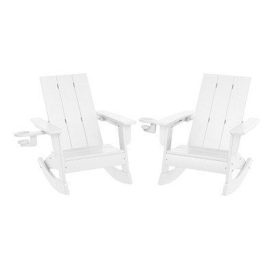 WestinTrends Malibu 3-Piece Kids HDPE Adirondack Chairs Set with Square Side Table and Cup Holders, White