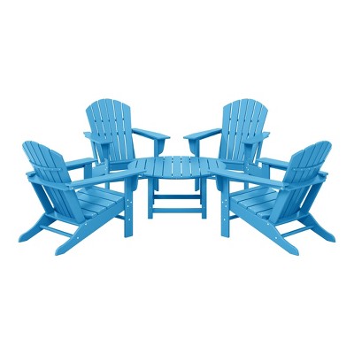 WestinTrends Malibu 5-Piece HDPE Folding Adirondack Chair Outdoor Patio Conversation Set, Red