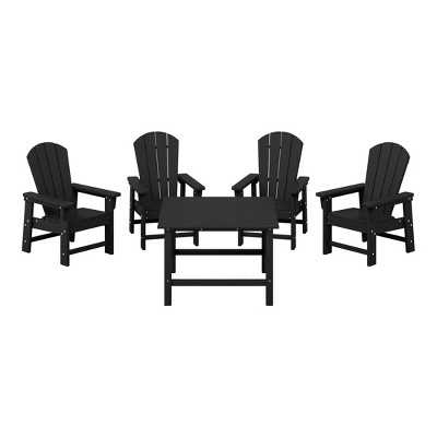 WestinTrends Malibu 5-Piece HDPE Outdoor Patio Furniture Couch and Rocking Chair Set, Black