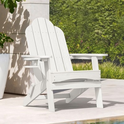 Elevate your patio with this vibrant and eye-catching foldable Adirondack chair. Perfect for the outdoors, the chair's HDPE construction can withstand outdoor elements with weather-resistant, UV, and fade-resistant materials that will keep the chair's vibrant color all year long. Sit down in comfort with wide armrests, a contoured, waterfall seat, and low seat depth, ensuring maximum comfort. Turn your patio into a place of comfort with this beautiful Adirondack chair.