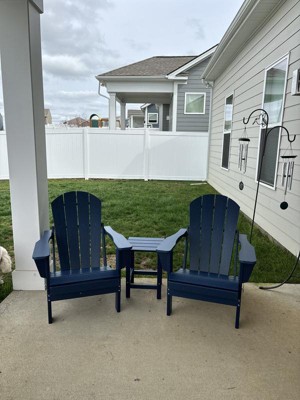 - Set Includes: Two (2) Adirondack Chairs, Two (2) Ottomans, One (1) Side Table