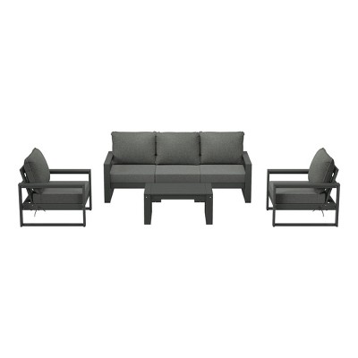 WestinTrends Montara 8-Piece Modern HDPE Outdoor Patio Furniture Conversation Set with Coffee Table and Ottomans, Gray