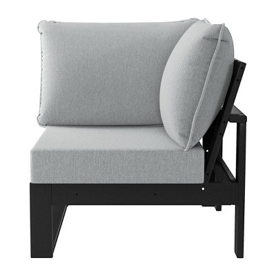 WestinTrends Montara Outdoor Patio HDPE Right Arm Facing Sectional Corner Chair with Patio Cushions, Black/Light Gray