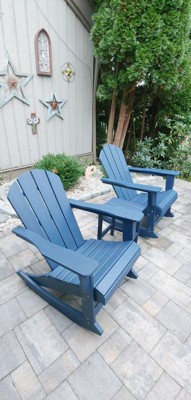 Create your favorite outdoor retreat with this classic Adirondack rocking chair — ideal for patios, porches, decks, gardens or poolside lounging. Made with weather-resistant HDPE plastic and rust-resistant hardware, this sturdy rocker is built to withstand sun, rain and everyday outdoor use. The contoured seat, wide armrests, and smooth rocking motion help you unwind in comfort while enjoying the fresh air. Designed with UV-resistant treatment to prevent fading, this Adirondack porch rocker delivers lasting durability, easy maintenance, and timeless style in a range of vibrant color options. Whether you’re sipping morning coffee or relaxing at sunset, this outdoor rocking chair combines comfort and durability for year-round enjoyment.