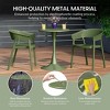 Elevate your outdoor gatherings with this four-person round dining table set. The dining table, crafted from durable metal with rust-resistant e-coating, offers a modern foundation for al fresco dining. Complementing the table are four stackable patio armchairs that are made from UV-resistant polypropylene resin. These lightweight chairs allow for effortless rearrangement, adapting to your evolving patio aesthetic. The perforated design and curved backrest ensure both comfort and practicality by offering additional comfort while sitting with the curved backrest and increased airflow through the perforated holes on the seat and backrest to prevent water from puddling on the seat and drain, and also keeps you cool during those warmer days with the increased airflow. Enjoy instant gratification with the fully assembled patio chairs, while the table's simple assembly is for quick setup, making this 4-person patio table and chair set the ideal set for your patio this season.