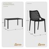 This 7-Piece Patio Dining Set offers a functional seating solution for outdoor spaces such as patios, decks, and gardens. The rectangular dining table is constructed from iron with a rust-resistant e-coating to support long-term outdoor use. Six stackable dining chairs provide flexible seating and convenient storage when not in use. Made from UV-resistant polypropylene resin, the lightweight chairs are easy to move and reposition as needed. The mesh seat design promotes airflow and helps prevent water buildup. Chairs arrive fully assembled, and the table requires simple leg attachment for quick setup.