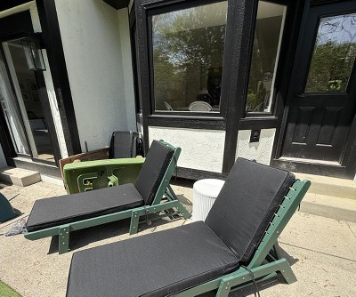 Very nice chaise loungers for the patio when you want to lay out! They are narrow, which I knew before purchasing, so if you want a wider chair you won’t like this one. I wish I had known they sold a chaise lounger with arm rests, because I probably would’ve bought those instead. I do love these though! I bought an Amazon cushion for these and they worked out fine. They have 4 different lounge positions and fold all the way down easily, but if you have to move it they are kind of heavy. They drag easily though. One of the chairs in the set did have missing parts, and that was sort of a nightmare to deal with. Overall I am very happy with these, especially for the price! The green is a nice darker green and pops with the black cushions I bought. They are good quality and were very affordable.