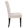 - Elegant button tufted backrest to add a touch of style to your unique décor. Almost any dining table or piece of furniture can be complemented by the simple elegance of the linen fabric chair.