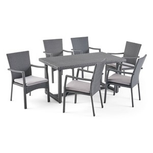 Westley 7pc Wicker Patio Dining Set - Gray - Christopher Knight Home: Iron Frame, Water-Resistant Cushions, 6 Arm Chairs