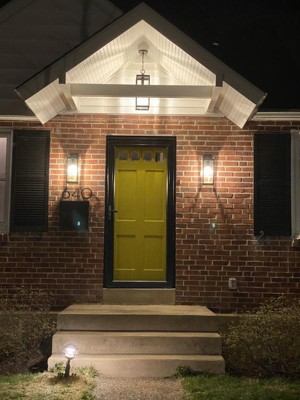 [This review was collected as part of a promotion.] We love our new porch pendant. We put in white lights and it provides a great glow for the front entry area. Also did matching garage sconses.