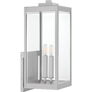 The clean lines and hand-riveted accents make the Westover outdoor lantern collection a modern industrialist's dream. A long rectangular framework provides an unobstructed view of the lantern's sleek interior. The choice of earth black, antique brass, industrial bronze, stainless steel, or western bronze further enhances the versatility of this refined collection. The earth black, stainless steel, and western bronze finishes show off clear beveled glass panels while the antique brass and industrial bronze options flaunt seedy glass. Use the Westover wall lantern in pairs to flank a door or on its own for an asymmetrical look.